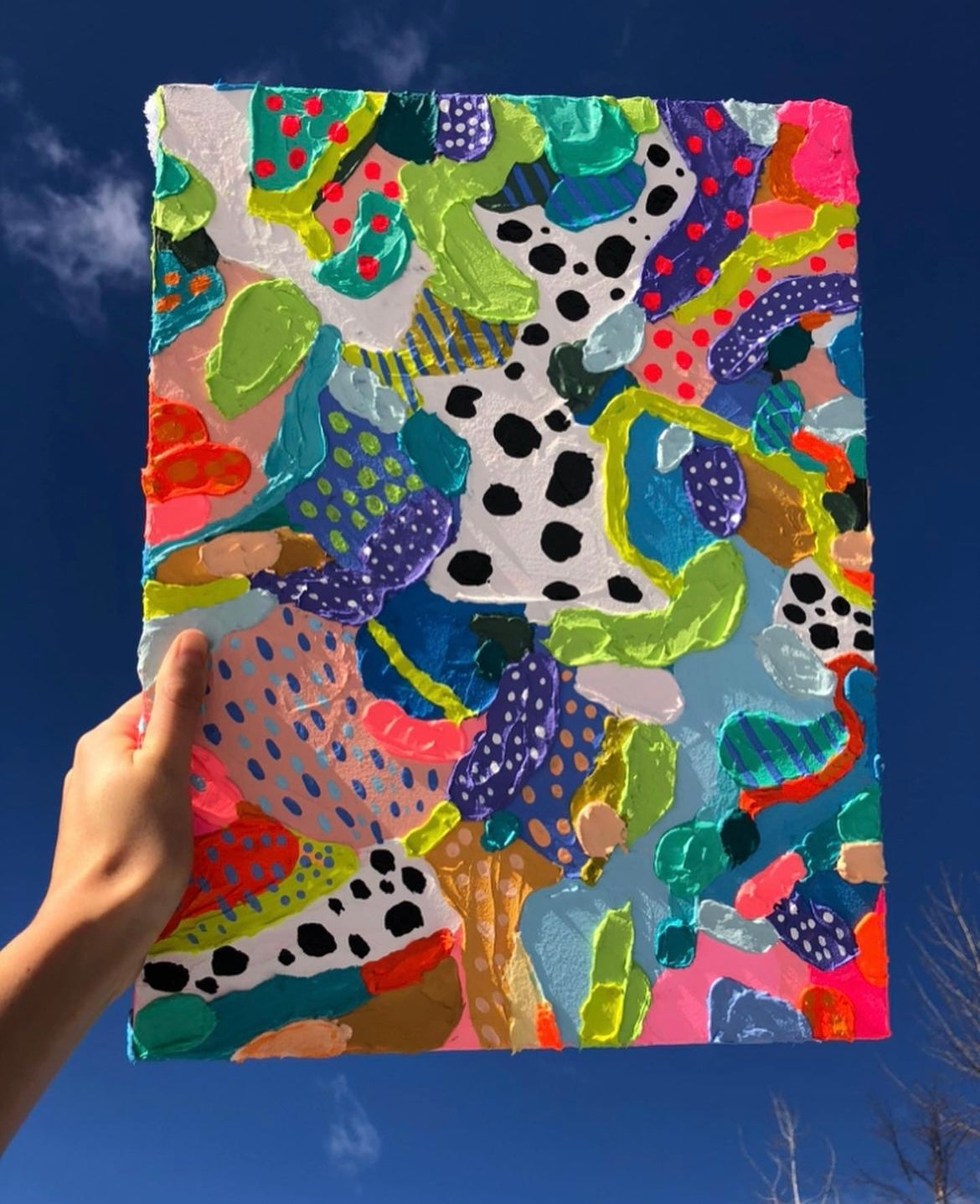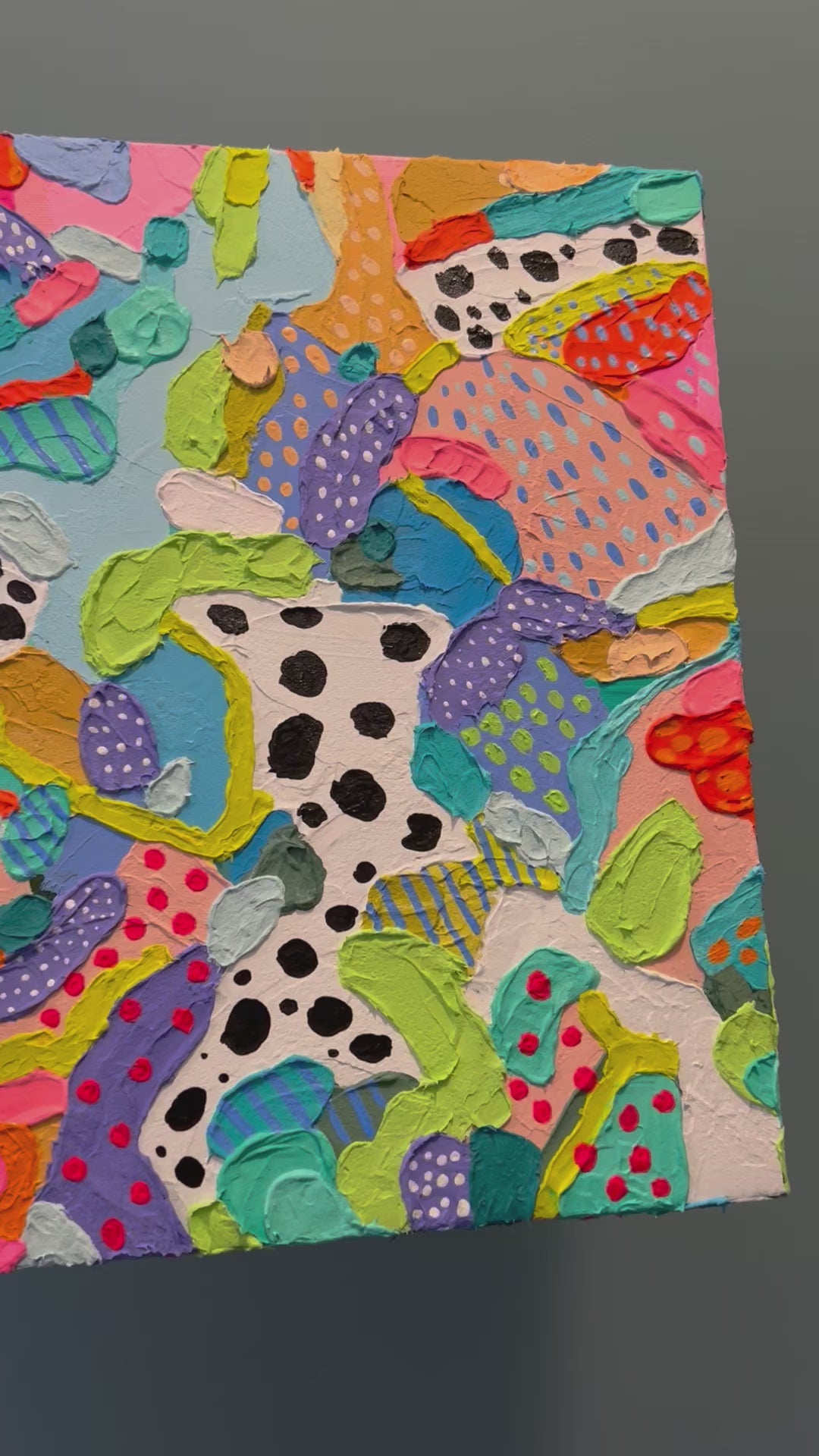 Experience the vibrant allure of this original 16x24 canvas artwork, meticulously crafted with a lavish application of thick paint and textured using fibrous mediums. The piece radiates an exuberant joy through its colourful bould textures, intricately molded and shaped by the strokes of a palette knife. No prints will ever be made.